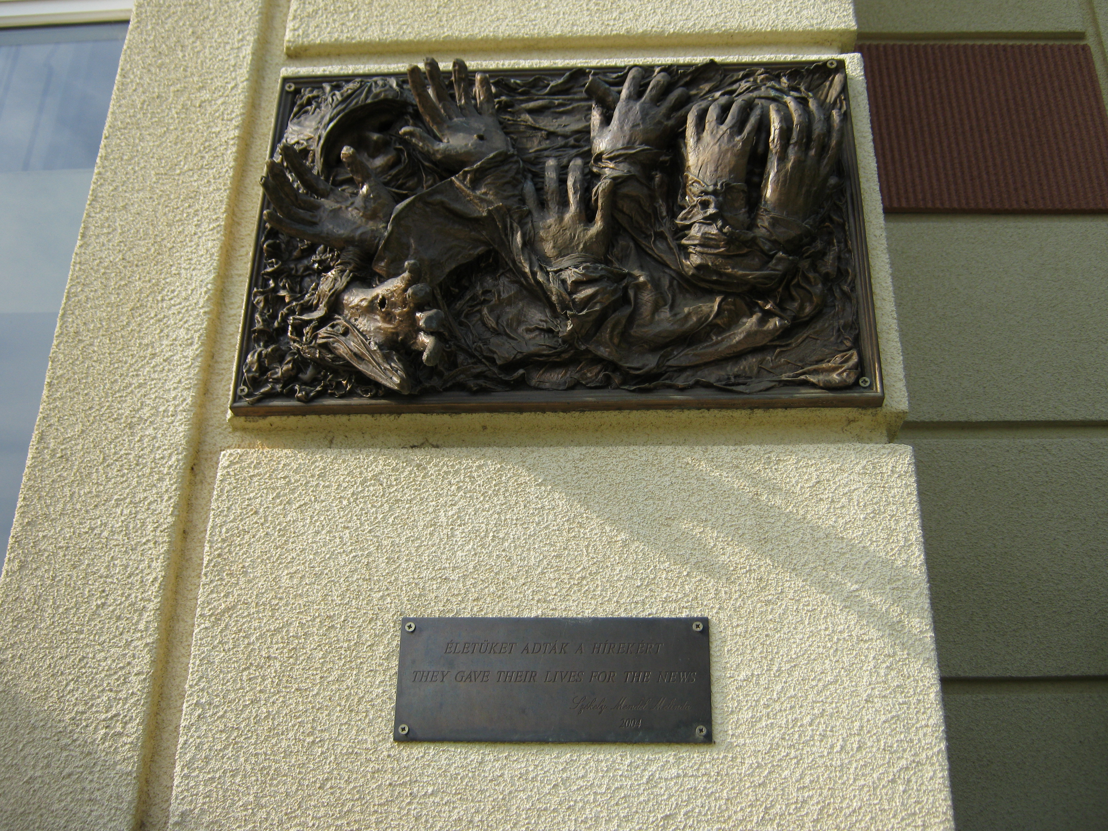 Nyilvános 1032 | 1464 | Nyíregyháza-Sóstó, Krúdy-Vigadó | A műemlékké nyilvánított Krúdy Vigadó Sóstófürdő központjában emelkedik. A Fürdőházat is tervező Pazár István tervei szerint 1911-ben épült szecessziós stílusban, 2002-ben gyönyörűen felújították. A képen látható, a Vigadó homlokzatán elhelyezett dombormű Székely Mendel Melinda alkotása. Azokról az újságírókról, tudósítókról, fotósokról emlékezik meg, akik szerte a világon hivatásuk teljesítése közben váltak áldozatokká. Ez Európa egyetlen ilyen tartalmú emléktáblája. 2004 májusában avatták fel, amikor itt rendezték meg a Tudósítók Világtalálkozóját. Felh. irod.: www.krudyvigado.hu www.beszelamarvany.hu A fénykép 2010 augusztus elején készült |