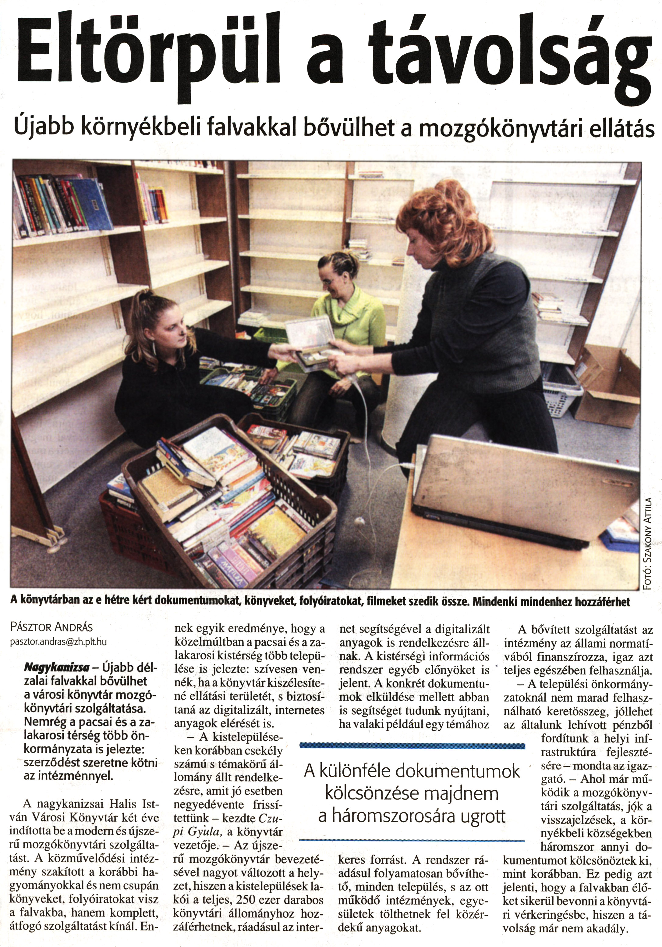 Nyilvános 1682 | 3277 | Zalai Hírlap 2008 02 05 030sz 14old - Eltörpül a távolság | A következő szöveg a cikkből keletkezett automata szövegfelismertetés segítségével: Eltörpül a távolság Újabb környékbeli falvakkal bővülhet a mozgókönyvtári ellátás •o A könyvtárban az e hétre kért dokumentumokat könyveket, folyóiratokat filmeket szedik össze. Mindenki mindenhez hozzáférhet A különféle dokumentumok kölcsönzése majdnem a háromszorosára ugrott PÁSZTOR ANDRÁS pasztor.andras@zh.plt.hu Nagykanizsa - Újabb délzalai falvakkal bővülhet a városi könyvtár mozgókönyvtári szolgáltatása. Nemrég a pacsai és a za-lakarosi térség több önkormányzata is jelezte: szerződést szeretne kötni az intézménnyel. A nagykanizsai Halis István Városi Könyvtár két éve indította be a modern és újszerű mozgókönyvtári szolgáltatást. A közművelődési intézmény szakított a korábbi hagyományokkal és nem csupán könyveket, folyóiratokat visz a falvakba, hanem komplett, átfogó szolgáltatást kínál. En- nek egyik eredménye, hogy a közelmúltban a pacsai és a za-lakarosi kistérség több települése is jelezte: szívesen vennék, ha a könyvtár kiszélesítené ellátási területét, s biztosítaná az digitalizált, internetes anyagok elérését is. - A kistelepülése- ___ ken korábban csekély számú s témakörű állomány állt rendelkezésre, amit jó esetben negyedévente frissítettünk - kezdte Czu-pi Gyula, a könyvtár vezetője. - Az újsze-rű mozgókönyvtár bevezetésével nagyot változott a helyzet, hiszen a kistelepülések lakói a teljes, 250 ezer darabos könyvtári állományhoz hozzáférhetnek, ráadásul az inter- net segítségével a digitalizált anyagok is rendelkezésre állnak. A kistérségi információs rendszer egyéb előnyöket is jelent. A konkrét dokumentumok elküldése mellett abban is segítséget tudunk nyújtani, ha valaki például egy témához keres forrást. A rendszer ráadásul folyamatosan bővíthető, minden település, s az ott működő intézmények, egyesületek tölthetnek fel közérdekű anyagokat. A bővített szolgáltatást az intézmény az állami normatívából finanszírozza, igaz azt teljes egészében felhasználja. - A települési önkormányzatoknál nem marad felhasználható keretösszeg, jóllehet az általunk lehívott pénzből ^^ fordítunk a helyi infrastruktúra fejlesztésére — mondta az igazgató. - Ahol már működik a mozgókönyvtári szolgáltatás, jpk a visszajelzések, a környékbeli községekben háromszor annyi dokumentumot kölcsönöztek ki, mint korábban. Ez pedig azt jelenti, hogy a falvakban élőket sikerül bevonni a könyvtári vérkeringésbe, hiszen a távolság már nem akadály. |