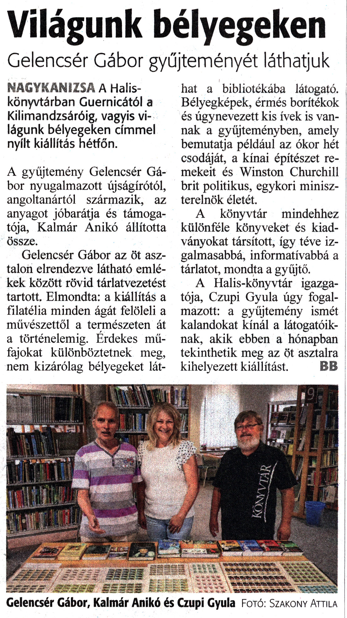 Nyilvános 1131 | 1534 | Zalai Hírlap 2023. június 21. 142. szám 16. oldal | Világunk bélyegeken Gelencsér Gábor gyűjteményét láthatjuk NAGYKANIZSA A Halis-könyvtárban Guernicától a Kilimandzsáróig, vagyis világunk bélyegeken címmel nyílt kiállítás hétfőn. A gyűjtemény Gelencsér Gábor nyugalmazott újságírótól, angoltanártól származik, az anyagot jóbarátja és támogatója, Kalmár Anikó állította össze. Gelencsér Gábor az öt asztalon elrendezve látható emlékek között rövid tárlatvezetést tartott. Elmondta: a kiállítás a filatélia minden ágát felöleli a művészettől a természeten át a történelemig. Érdekes műfajokat különböztetnek meg, nem kizárólag bélyegeket lát- hat a bibliotékába látogató. Bélyegképek, érmés borítékok és úgynevezett kis ívek is vannak a gyűjteményben, amely bemutatja például az ókor hét csodáját, a kínai építészet remekeit és Winston Churchill brit politikus, egykori miniszterelnök életét. A könyvtár mindehhez különféle könyveket és kiadványokat társított, így téve izgalmasabbá, informatívabbá a tárlatot, mondta a gyűjtő. A Halis-könyvtár igazgatója, Czupi Gyula úgy fogalmazott: a gyűjtemény ismét kalandokat kínál a látogatóiknak, akik ebben a hónapban tekinthetik meg az öt asztalra kihelyezett kiállítást. BB Gelencsér Gábor, Kalmár Anikó és Czupi Gyula Fotó: Szakony Attila |