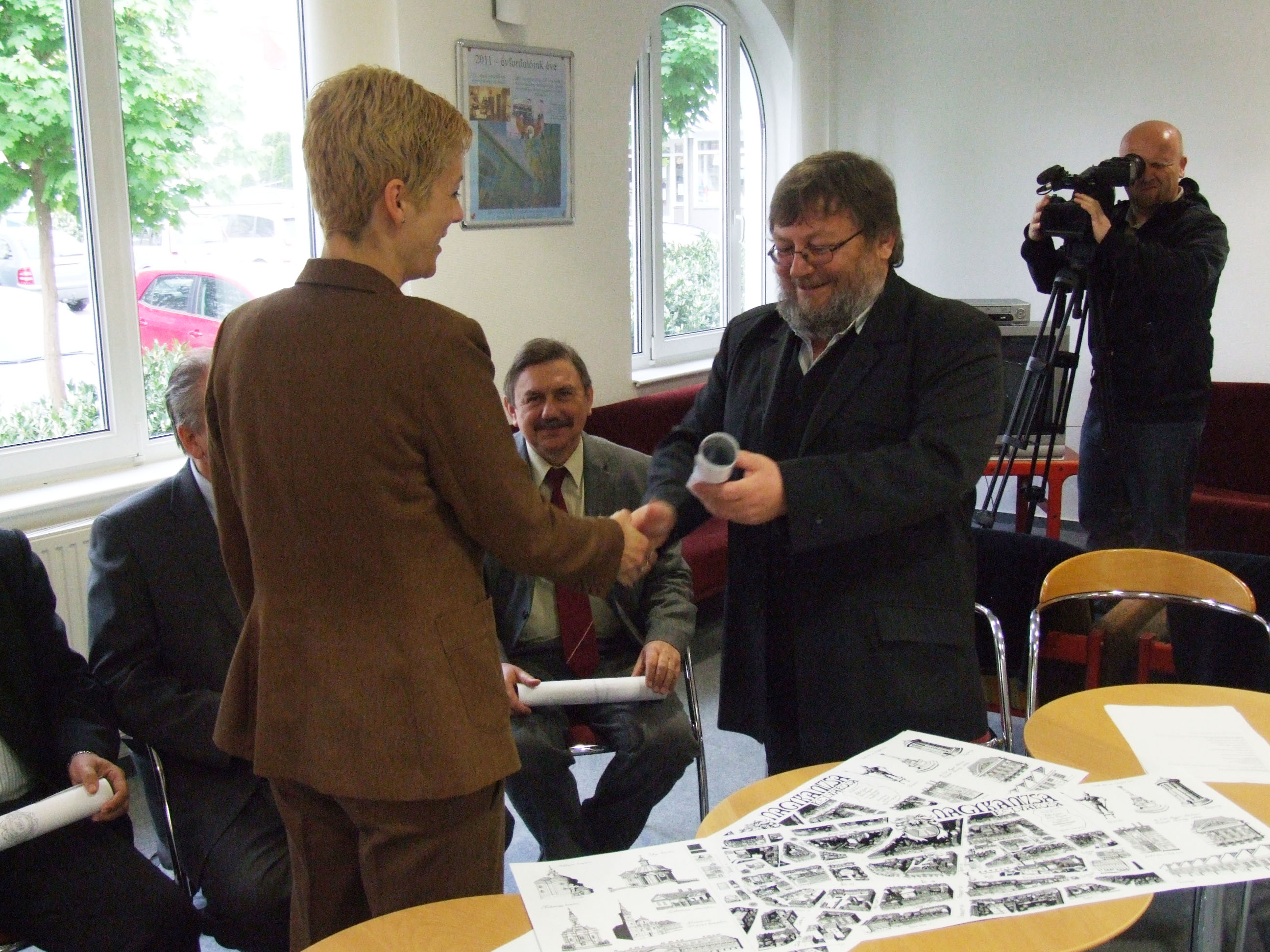 Nyilvános 1397 | 2831 | Nagykanizsa belvárosa – madártávlati kép | 2009 ősze óta folyt az munka, melynek eredményeként elkészült Nagykanizsa belvárosa madártávlati képe, Somogyi Győző alkotása. Bemutatására 2011. április 26-án, kedden 10,30-kor került sor a Halis István Városi Könyvtárban. Sokan támogatták a könyvtár és a Könyvtárpártoló Alapítvány törekvését – mondta el Czupi Gyula, a könyvtár igazgatója és az alapítvány képviselője. Az egész időszakban komoly segítséget jelentett a média képviselőinek támogatása, ezért az alkotást először az anyagi támogatóknak és a média képviselőinek mutatták be. A támogatók közül megjelent a Nagykanizsa Önkormányzatának képviseletében Dénes Sándor alpolgármester, a DKG-EAST képviseletében Szabó József, a nagykanizsai Városvédő Egyesület elnöke, Cserti Tibor, valamint a nagykanizsai Tourinform vezetője, Bali Vera. A magántámogatókat ezen a sajtótájékoztatón Tarnóczky Attila képviselte. A támogatók nem csak tanulmányozhatták az elkészült alkotást, hanem egy-egy példányt magukkal is vihettek ebből az alkalomból. Ugyancsak a kép egy-egy másolatával gazdagodva hagyták el a könyvtárat a média képviselői. A sajtótájékoztatón megjelenni nem tudó Kanizsa Plaza, a Sponzor Tours (Nagykanizsa), valamint a KKK Senior Kosárlabda Csapat később kapják meg a madártávlati képet, akárcsak azok, akik egyéni támogatásukkal segítették az alkotás létrejöttét. A könyvtár 60 éves születésnapjára készült művet nagyobb számban először a május 1-jei ünnepi program azon (300-nál több könyvet kölcsönző) meghívottjai kapják, akik emléklapot is vehetnek át ebből az alkalomból. Május 1-jétől a madártávlati kép meg is vásárolható a könyvtárban. Az érvényes könyvtári tagsággal rendelkezők kedvezményesen juthatnak hozzá. |