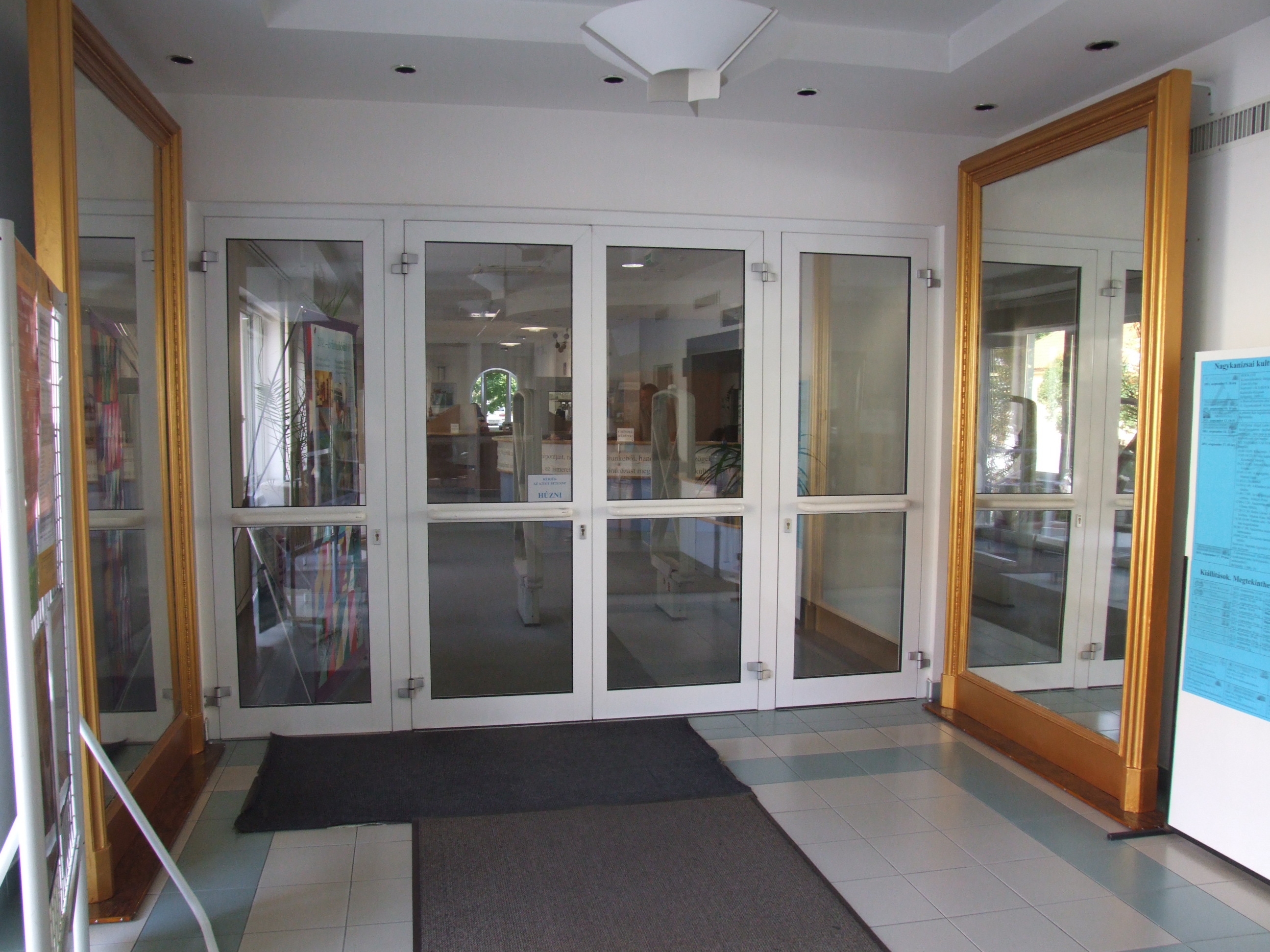 Nyilvános 1348 | 2681 | Rövid leírás | Teljes leírás (417 B) | A 60 éves születésnapját ünneplő könyvtár a kezdetek (1950-es évek) után a Sugár út 3-ban töltött időszak bemutatására készül (1956-1988). A bemutató több eleme látható már az épületben, köztük az a két nagy méretű tükör is, mely a Sugár úti épület dísze volt. A tükrök a bejáratnál kerültek elhelyezésre Tarnóczky Attila felújító munkája után. (2011. szeptember 15.) |