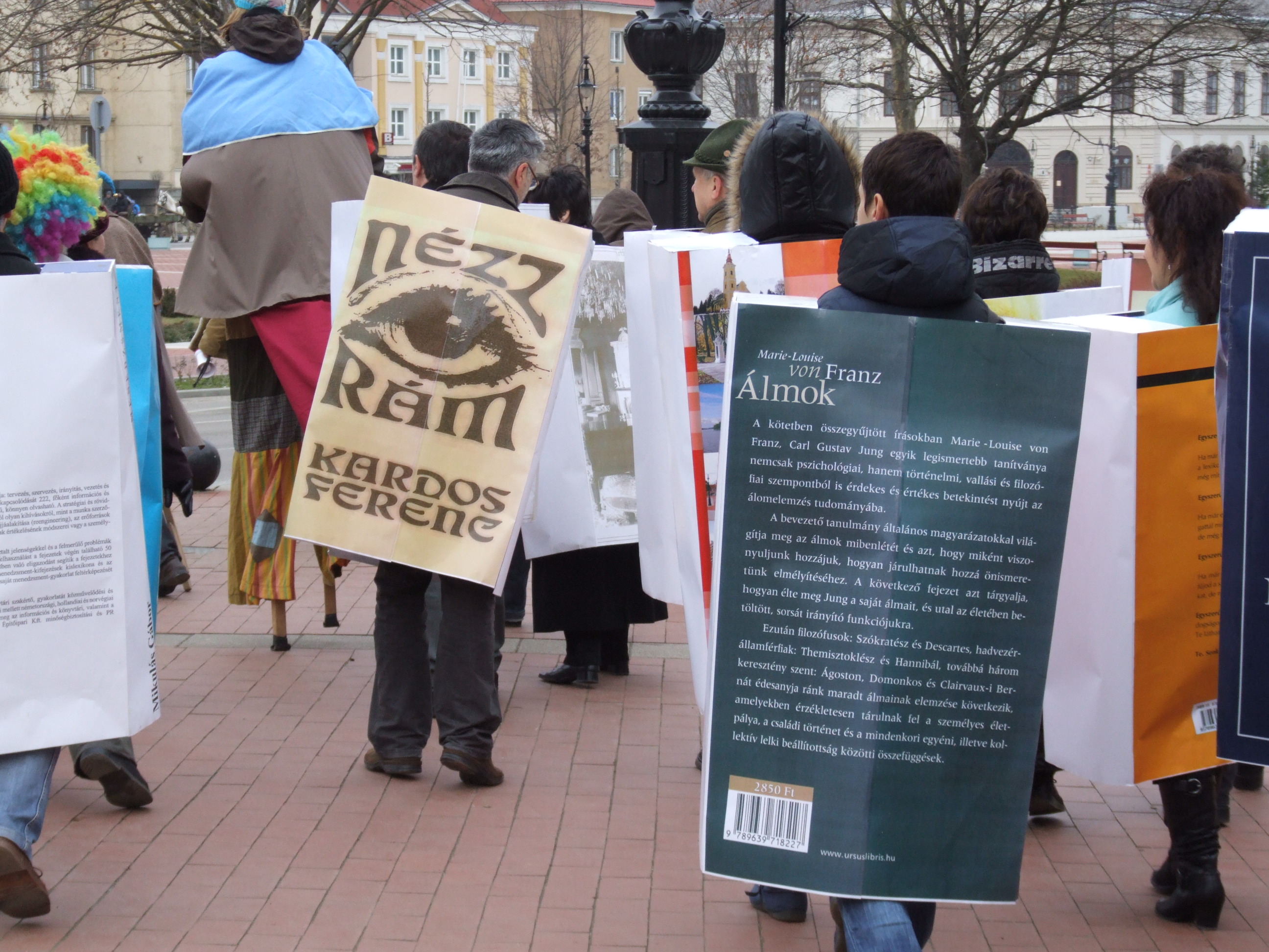Nyilvános 1093 | 1550 | 2013. február 9. A farsangi fánkfesztiválra készülve felhívásban kértük olvasóinkat, hogy öltsék magukra kedves könyvüket. Egy „könyvespolcnyi” jelentkező vette magára kedves olvasmányát, az ő vonulásukról készültek ezek a képek. A környezetükben néhol láthatók a Nagykanizsai Gólyalábasok, akik szintén a könyvtárhoz kötődnek. A „felvonuló kötetek” a könyvtár épületében még megtekinthetők. | |