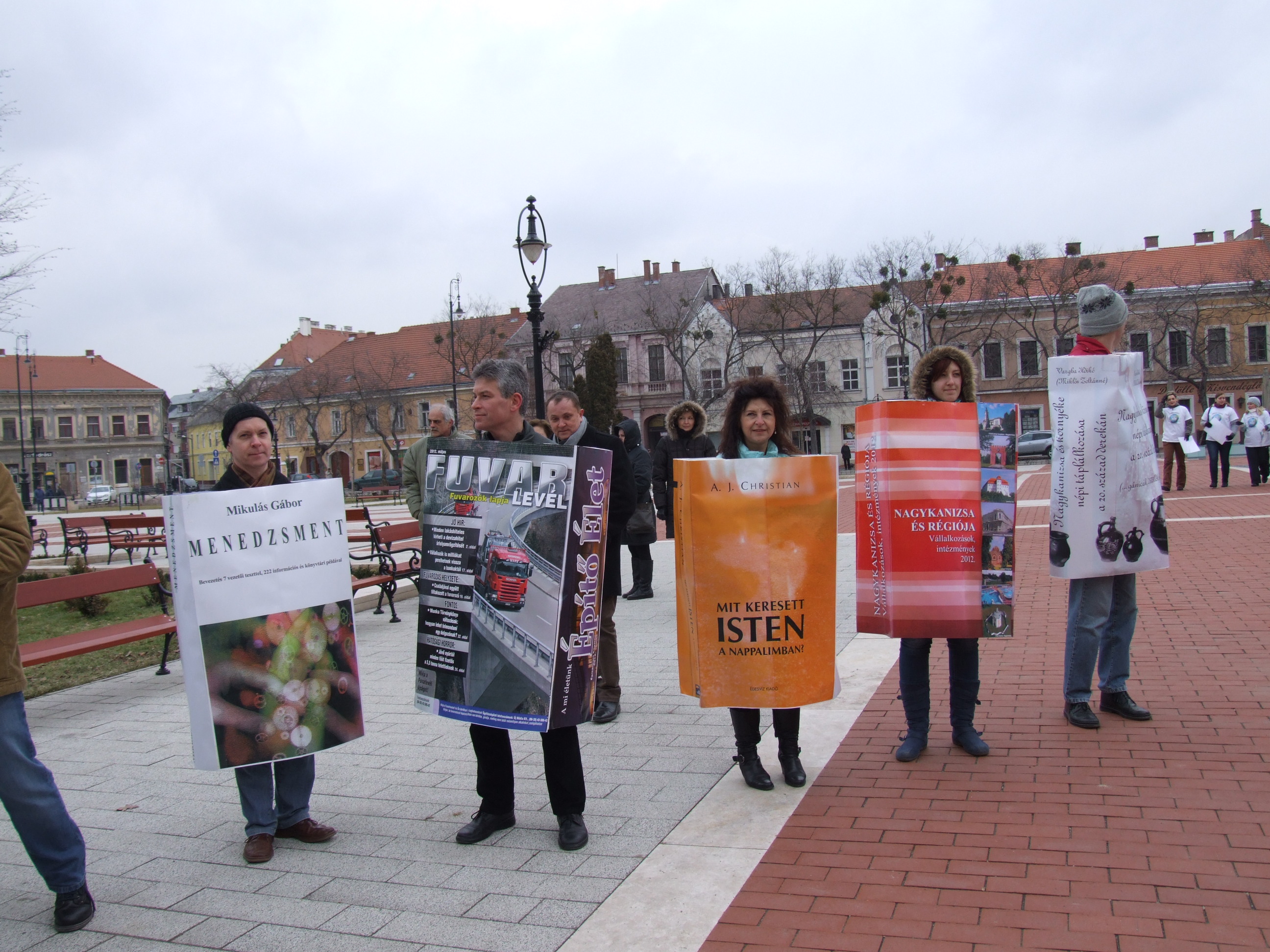 Nyilvános 1081 | 1406 | 2013. február 9. A farsangi fánkfesztiválra készülve felhívásban kértük olvasóinkat, hogy öltsék magukra kedves könyvüket. Egy „könyvespolcnyi” jelentkező vette magára kedves olvasmányát, az ő vonulásukról készültek ezek a képek. A környezetükben néhol láthatók a Nagykanizsai Gólyalábasok, akik szintén a könyvtárhoz kötődnek. A „felvonuló kötetek” a könyvtár épületében még megtekinthetők. | |