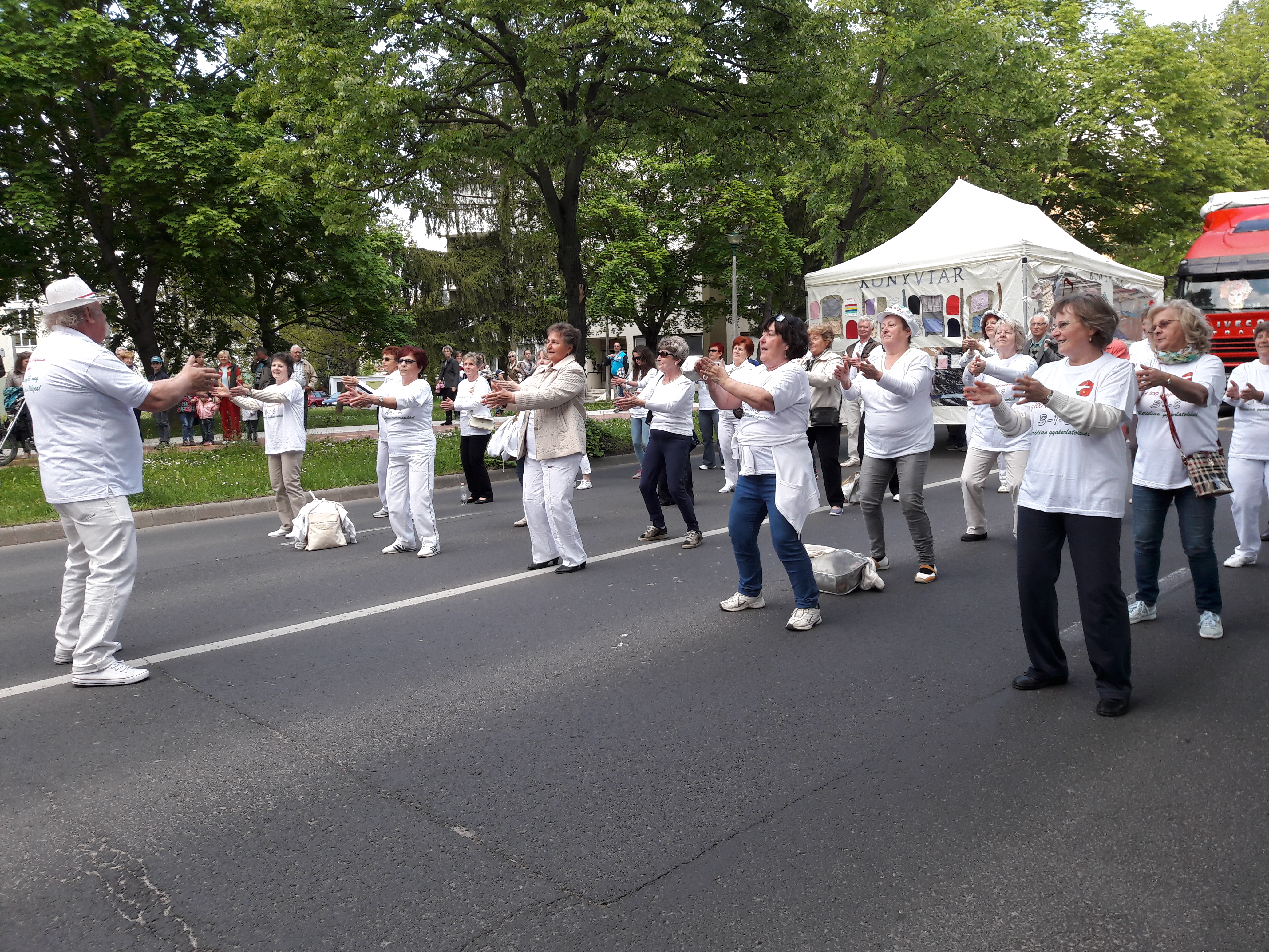 2017.04.30. Utca Tánc Fesztivál - Vonulás - Gólyalábasok, fekete kalapos táncosok, meridián tornások