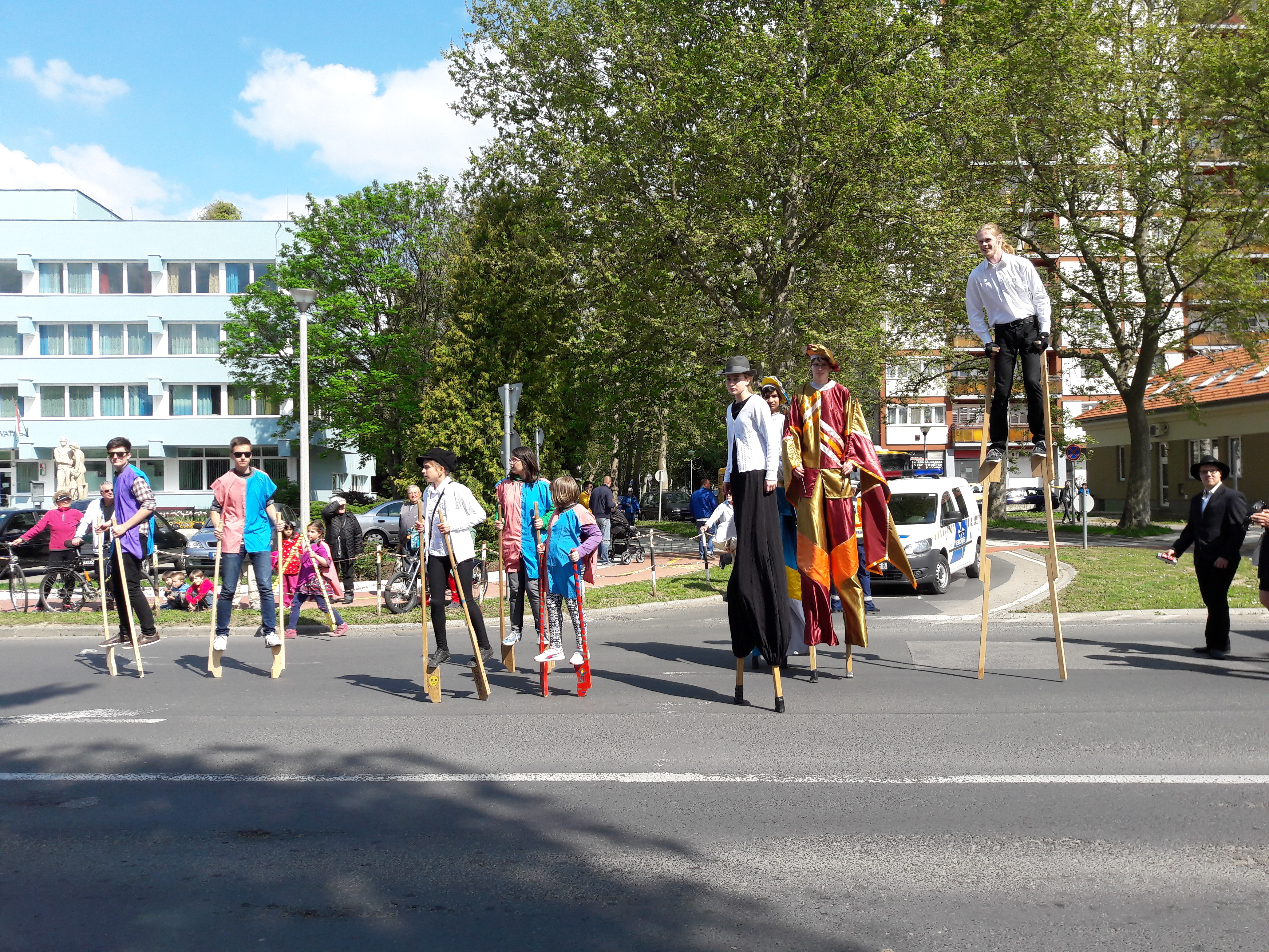 2017.04.30. Utca Tánc Fesztivál - Vonulás - Gólyalábasok, fekete kalapos táncosok, meridián tornások