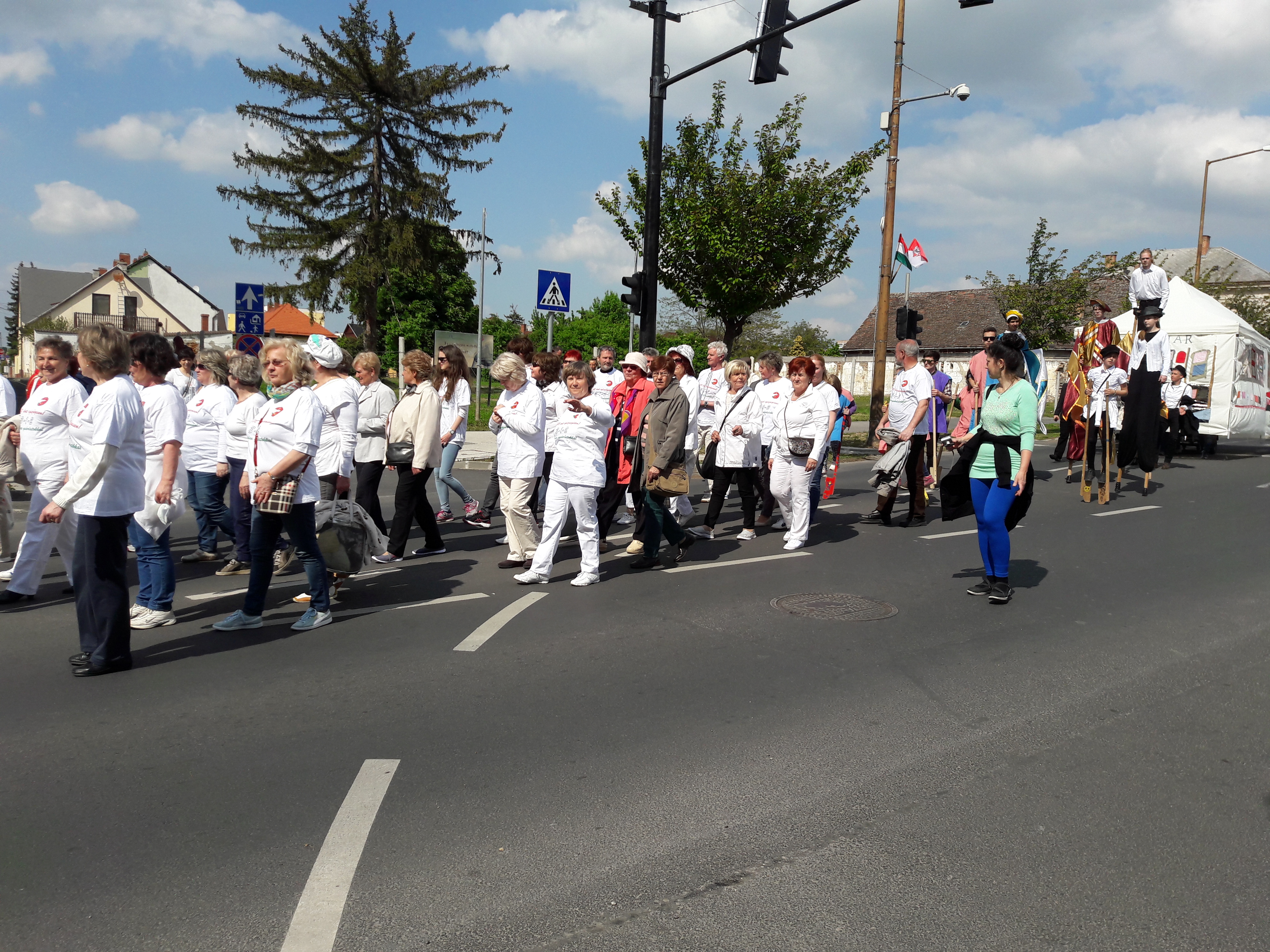 2017.04.30. Utca Tánc Fesztivál - Vonulás - Gólyalábasok, fekete kalapos táncosok, meridián tornások