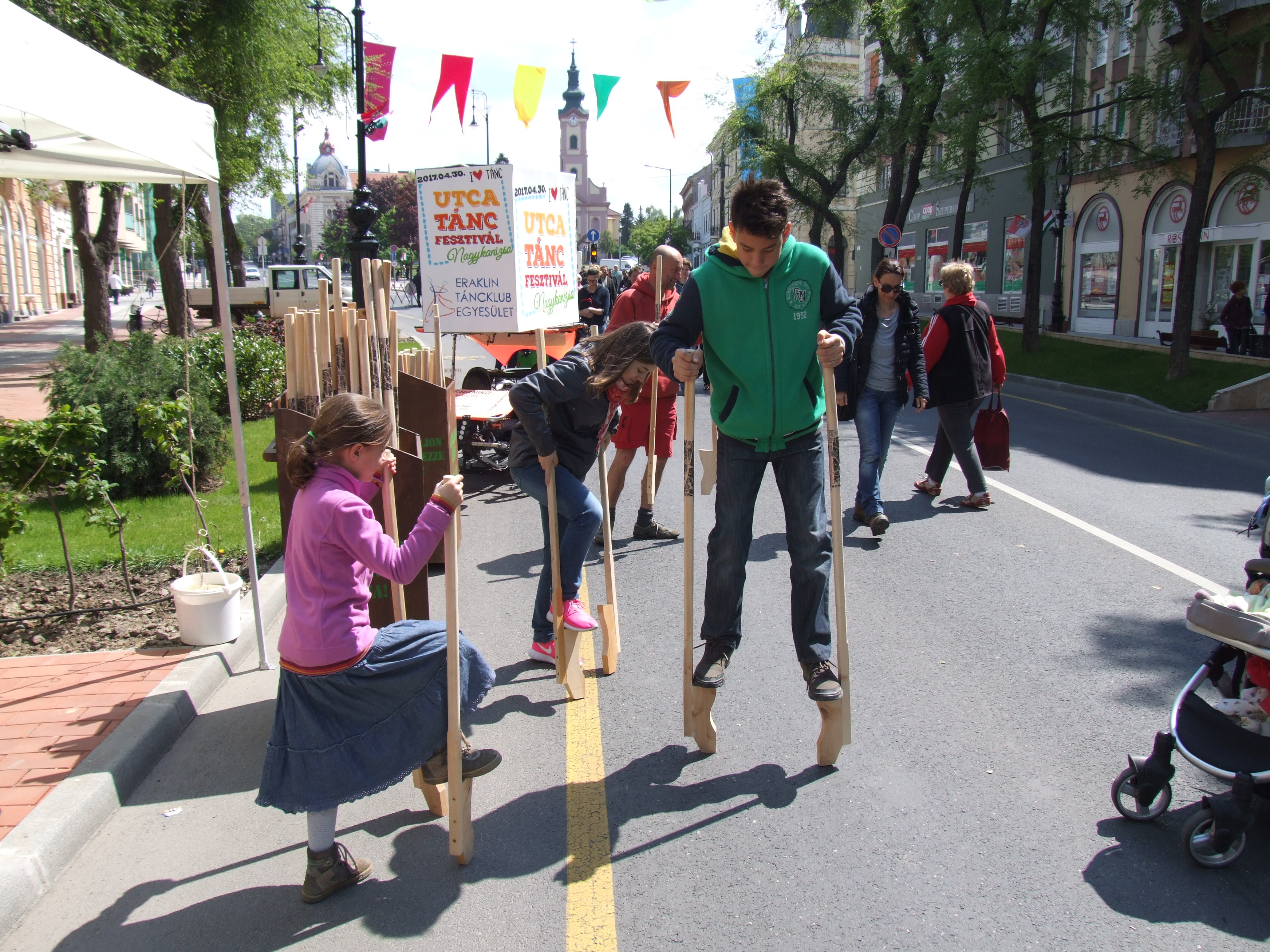 2017.04.30. Utca Tánc Fesztivál - Sátor - Gólyalábasok, fekete kalapos táncosok, meridián tornások