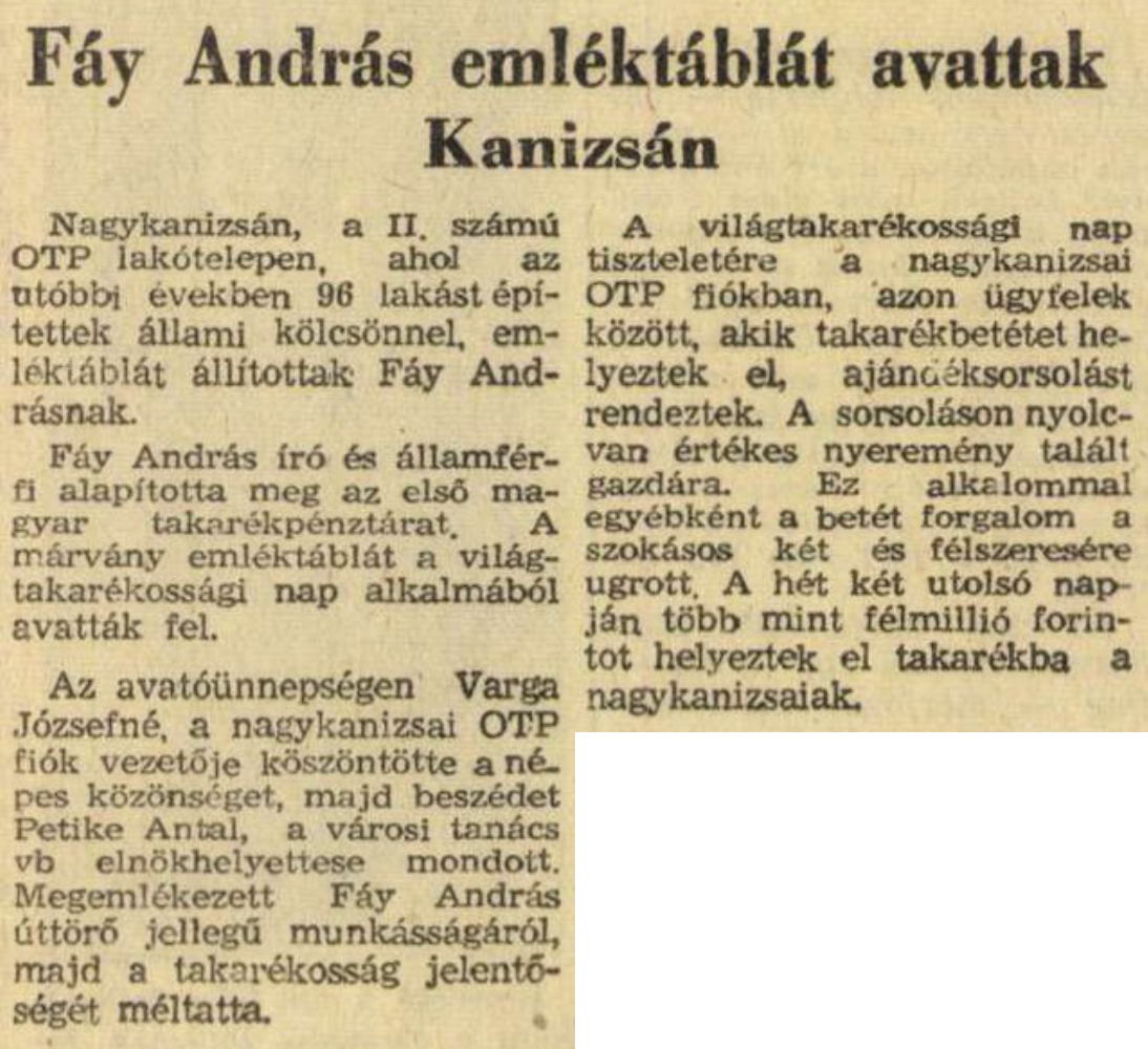 Zalai Hírlap 1969 11 02 12old - Fáy András emléktáblát avattak Kanizsán.jpg
